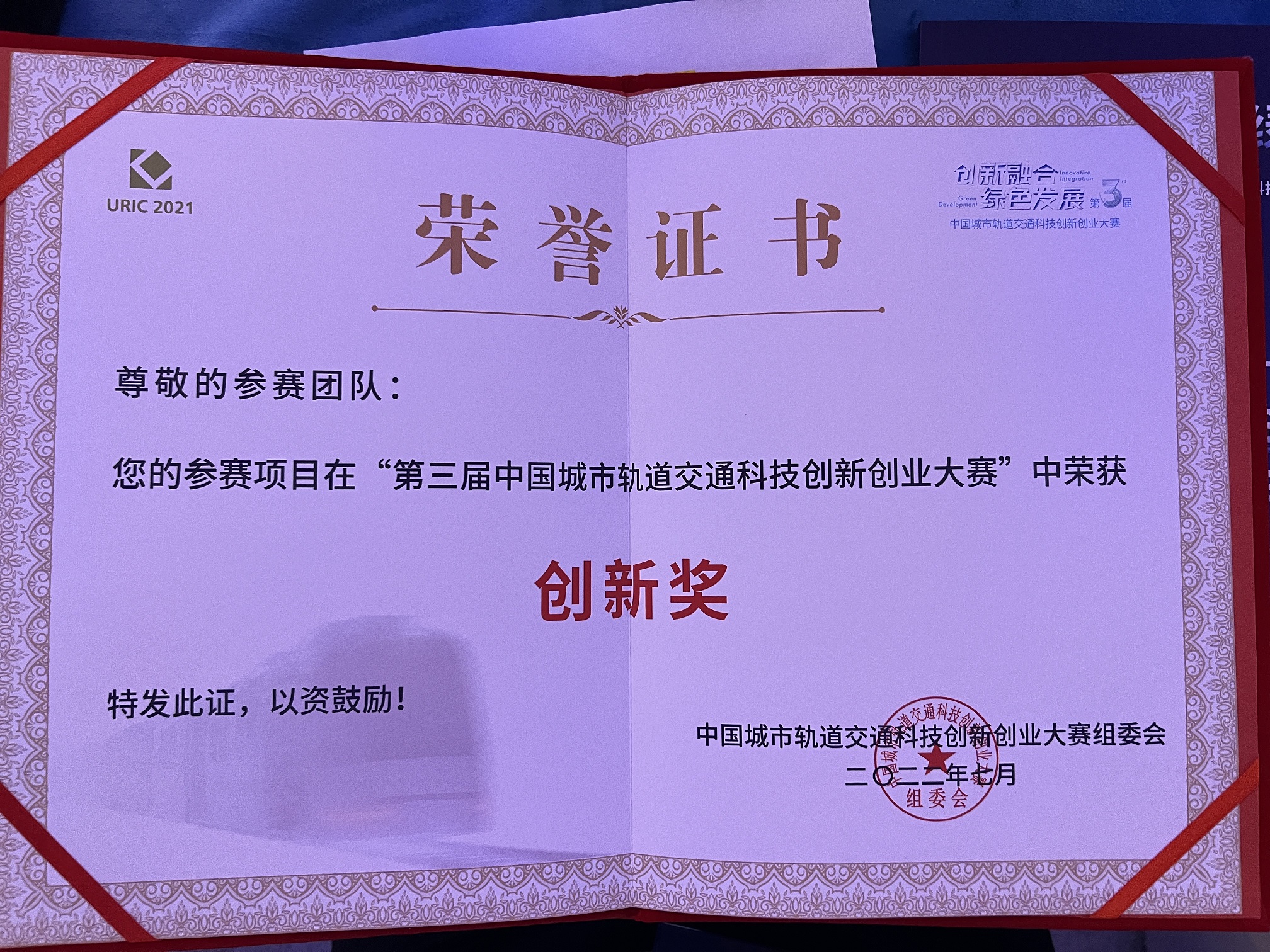航天檢測喜獲第三屆中國軌道交通科技創新創業大賽創新獎